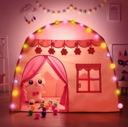 Armas laste majakujuline telk muudab iga toa mängu ja puhkuse maagiliseks pelgupaigaks. Kerge konstruktsioon ja praktiline kott võimaldavad lihtsat transporti ning kiiret kokkupanekut. Komplektis on LED cotton balls valguskett patareitoitel 20 tulega ja 2,8 m pikkusega, mis loob mõnusa meeleolu. Vastupidav materjal, stabiilne raam ja põrand tagavad turvalisuse mängimisel nii toas kui ka terrassil.