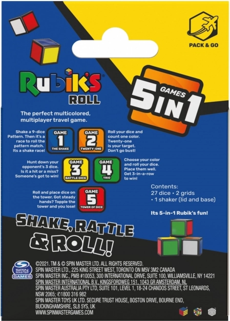 Rubiku Roll on kaasaskantav mäng, mis sisaldab 27 täringut, loksutit ja kahte võrku. See dünaamiline komplekt hõlmab viit mängu: Raputus, Üksteistkümned kuni Kakskümmend üks, Lahingutäringud, Trio ja Täringutorn, mis ühendavad erinevaid oskusi, nagu arvutamine ja strateegiline täringute paigutus.