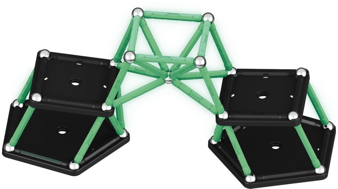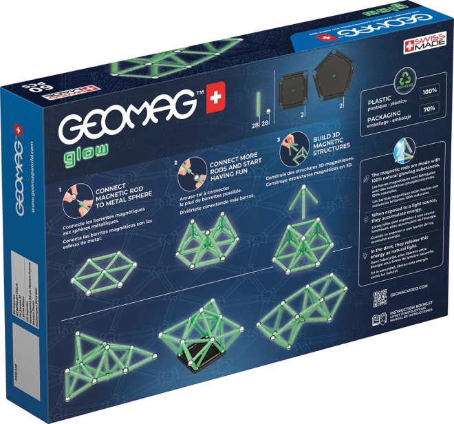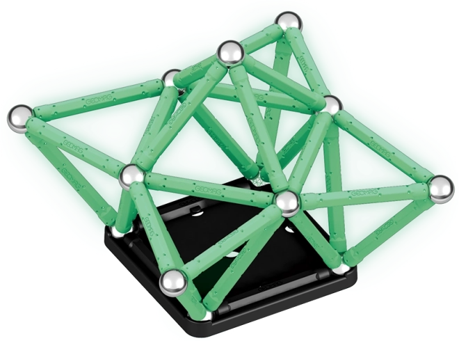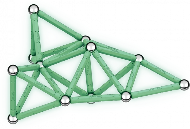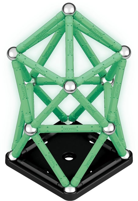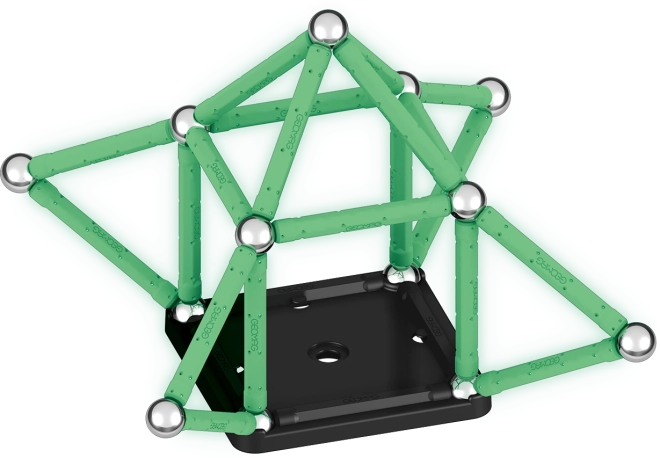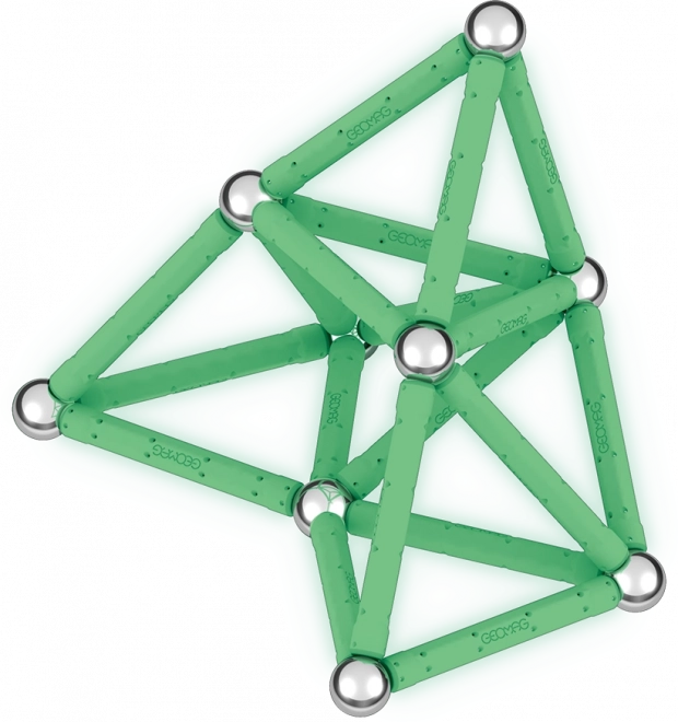 Geomag Glow ehituskomplekt ühendab lõbu ja õppimise. Pimedas helendavad magnetpulgad ärkavad hämardudes ellu ja muudavad iga mudeli köitvaks valgusetenduseks. Detailid on valmistatud 100% taaskasutatud plastist, nii et lapsed mängivad lõbusalt ja jätkusuutlikult.