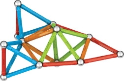 GEOMAG Supercolor RE ehituskomplekt pakub lastele alates 3. eluaastast turvalist ja lõbusat tutvust füüsika ja geomeetriaga. Värvilised magnetpulgad ja metallkuulid ühenduvad lihtsalt ning püsivad koos, nii et nii väiksemad kui ka suuremad lapsed saavad kiiresti ehitada stabiilseid 2D- ja 3D-mudeleid. Komplekt on valmistatud 100% taaskasutatud plastist – suurepärane valik vanematele, kellele on oluline jätkusuutlikkus.