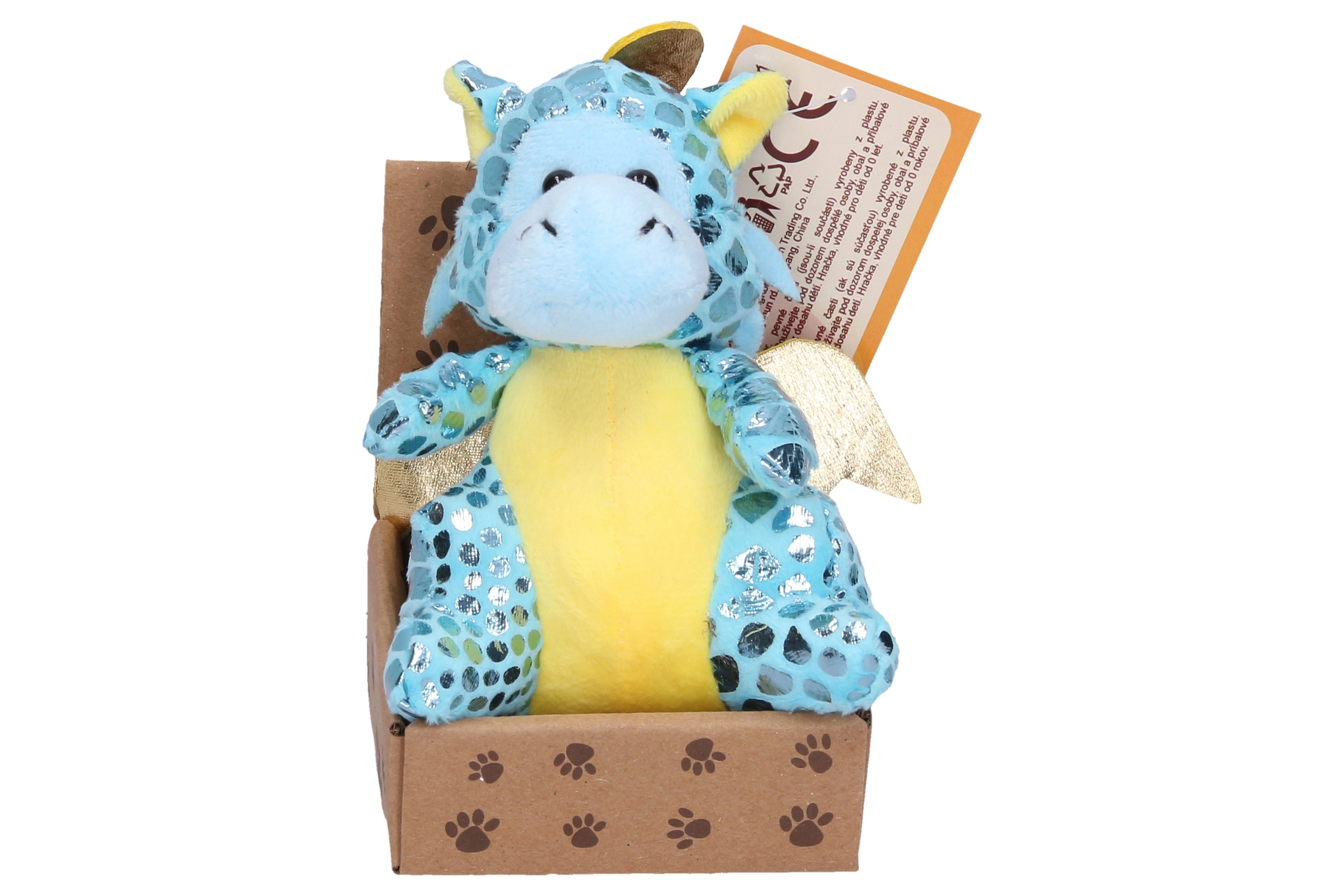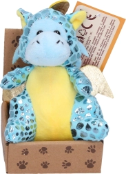 Armas 13 cm kõrgune plüüsist draakon rõõmustab nii lapsi kui ka kollektsionääre. Sellel on särav välimus, see on pehme ja siidine katsuda ning saadaval mitmes värvivariandis – lilla, roheline ja sinine. Ideaalne kingituseks või kollektsiooni.