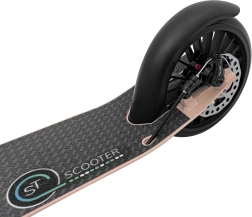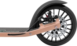Ohutus on kindlalt sinu kätes: käsitsi juhitav ketaspidur koos tagumise jalapiduriga tagab kindla ja kiire peatumise. 190 × 35 mm kummirattad summutavad väiksemaid ebatasasusi ning libisemiskindel pind hoiab jalga kindlalt ka märjaga. Mugavaks peatamiseks on olemas tugijalg.