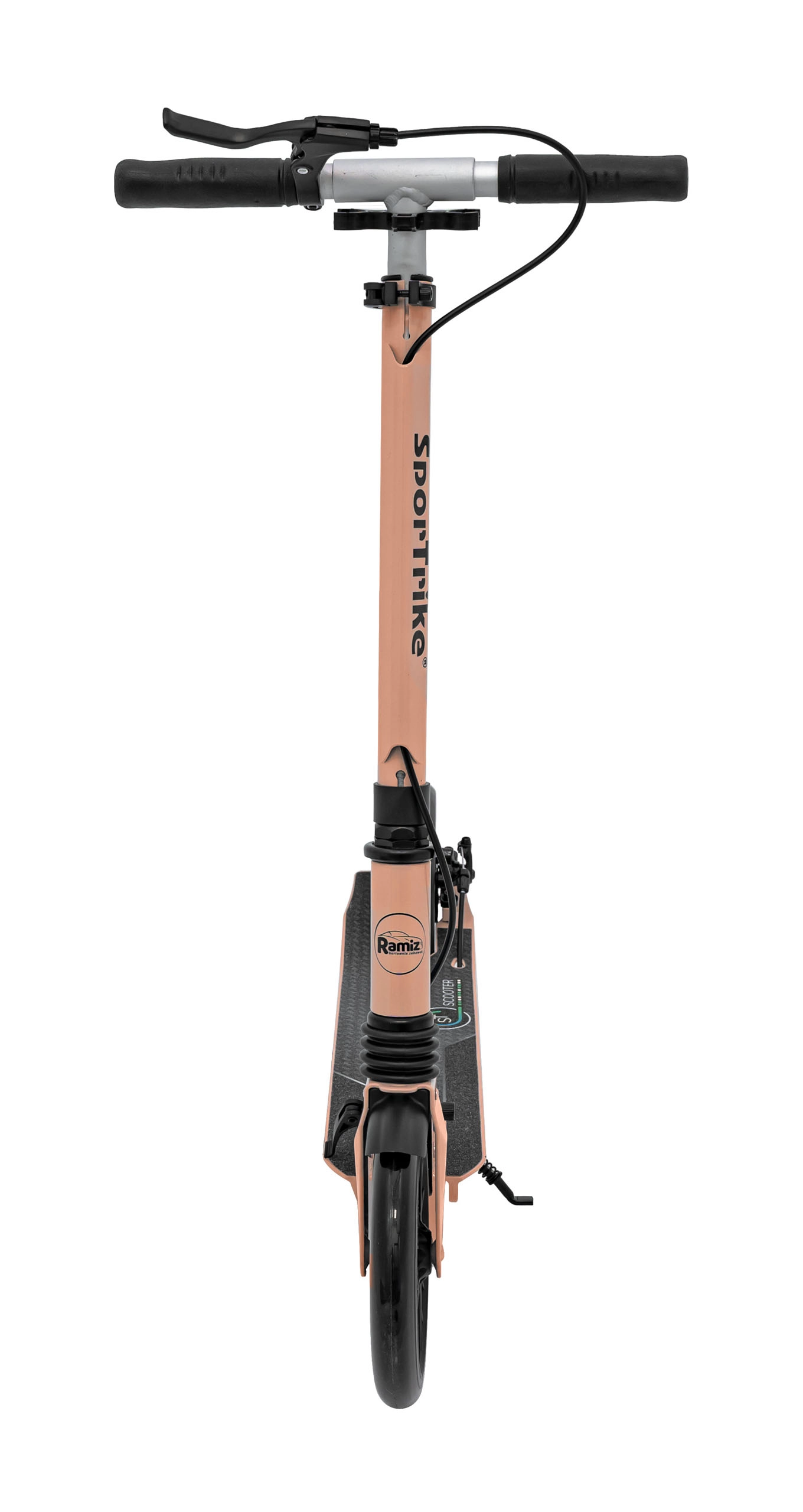 Stiilne SPORTRIKE linnatõukeratas kerge alumiiniumraami, kahepidurisüsteemi (käsitsi ketaspidur + tagumine jalapidur) ja reguleeritava lenksukõrgusega mugavaks sõiduks. Libisemiskindel jalalaud, 190 mm kummirattad ja praktiline tugijalg tagavad ohutuse, stabiilsuse ja lihtsa parkimise.