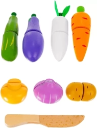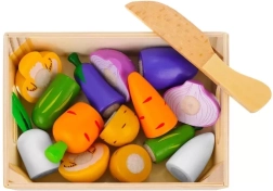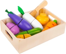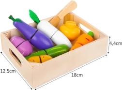 Lõbus puidust köögiviljakomplekt lõikamiseks stiilses kastis pakub lastele tunde loovat mängurõõmu. Tänu sisemistele krõpskinnitustele saab tükke hõlpsalt “lõigata” ja taas kokku ühendada ohutu puidust noaga. Arendab peenmotoorikat, loovust ning värvide ja kujundite õppimist, on vastupidav ja lihtsasti kaasaskantav.