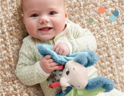 Kohevad, suured kõrvad ja satiinised detailid kutsuvad pigistama, silitama ja avastama erinevaid pindu – ideaalne puudutustaju arendamiseks ning uinumisel rahustamiseks.