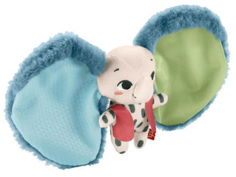 Sensoorne kaisumänguasi elevandi kujul pakub rikkalikku taktiilset kogemust: pehme plüüs, satiinidetailid ja krabisevad elemendid. Kontrastses sinises ja rohelises toonid köidavad tähelepanu ja toetavad nägemise arengut, samas kui hõlpsasti haaratavad vormid aitavad harjutada peenmotoorikat ja käe‑silmakoordinatsiooni.