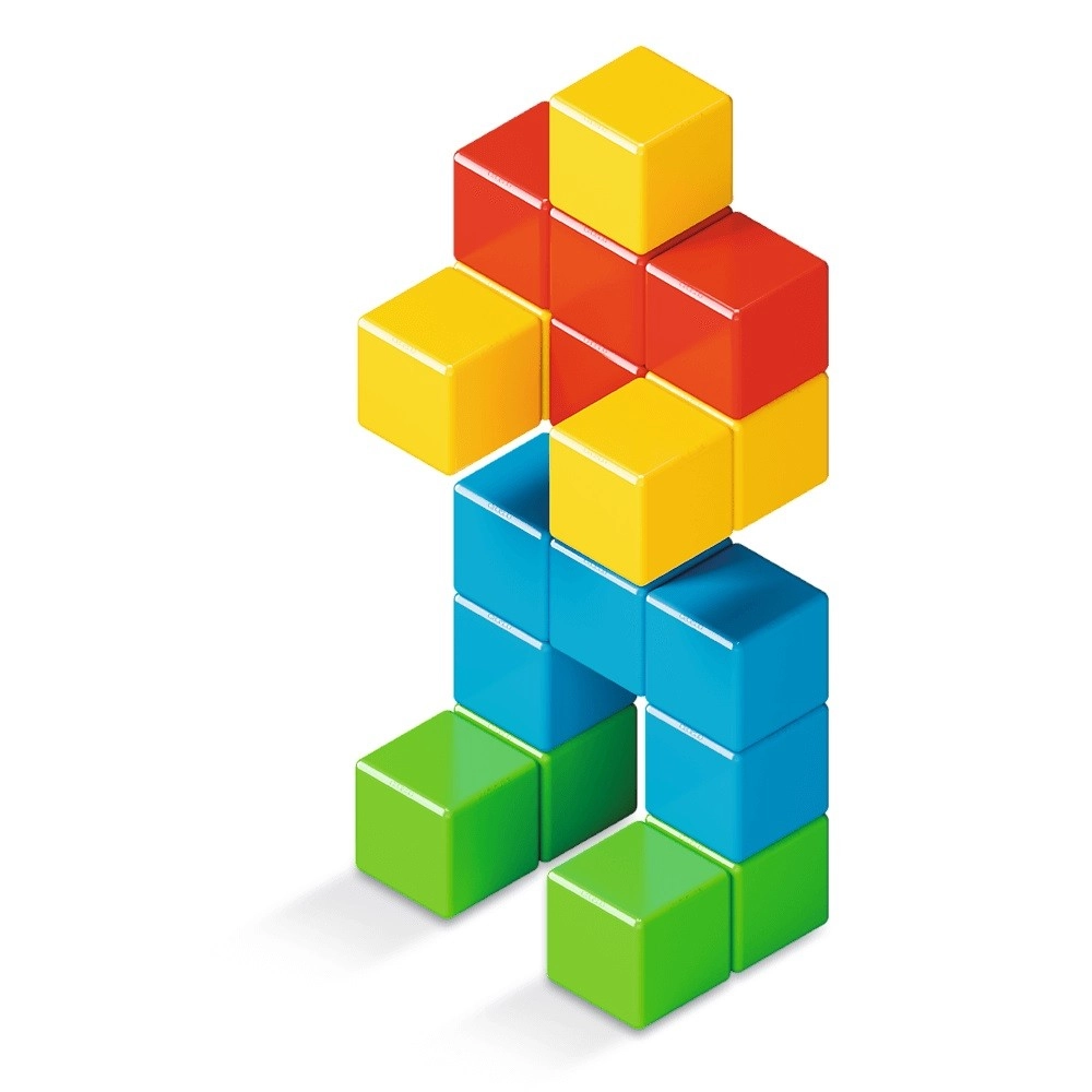 Kuubikud haakuvad igast suunast, nii et mudilastel on lihtne ehitada stabiilseid vorme ja proovida uusi kombinatsioone ilma pettumuseta.