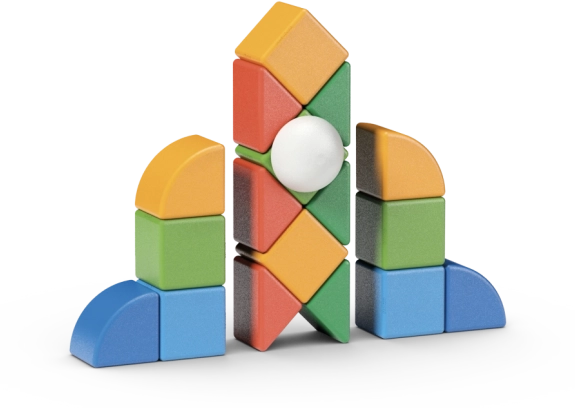 Suured, värvilised ja ümarate servadega tükid on mõeldud väikestele kätele. Need toetavad peenmotoorikat, silma-käe koordinatsiooni ja fantaasia arengut.
