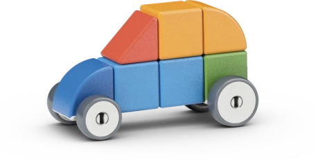 Komplektis on neli magnetratast, millega lapsed ehitavad lihtsaid autosid ja rikastavad mängu liikumise ning uute lugudega.