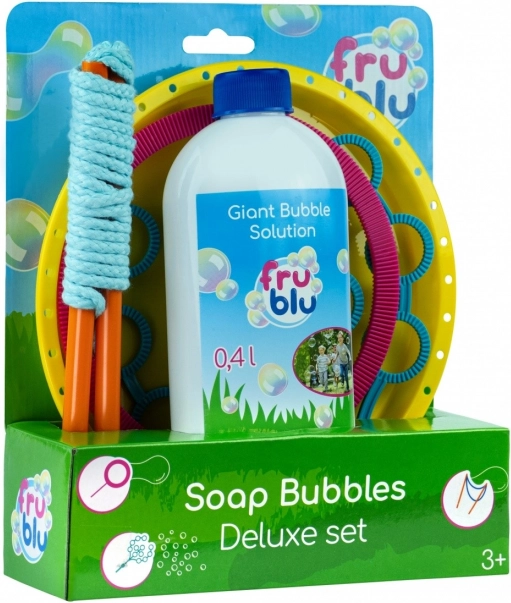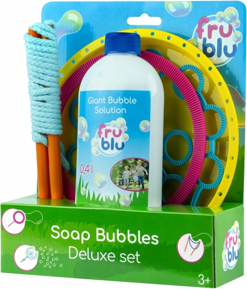 Deluxe FRU BLU mullikomplekt 0,4 l lahusega pakub kompaktset ja hõlpsasti hoiustatavat lahendust nii väikeste kui ka hiigelmullide tegemiseks. Tänu lihtsale kokkupanekule, 3 vahetatavale otsikule ja kaasasolevale 0,4 l lahusele naudivad nii lapsed kui ka täiskasvanud maksimaalset õuemeelelahutust pidudel ja igapäevaselt.