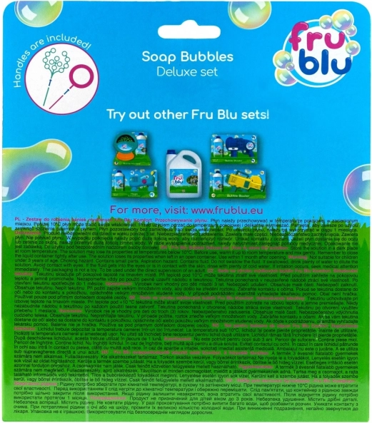 Otsid lihtsat viisi, kuidas võluda välja imelisi mulle? See FRU BLU deluxe komplekt pakub kompaktset teostust, mida on kerge hoiustada ja kiiresti kasutusvalmis seada. Kolm praktilist otsikut võimaldavad luua erineva suurusega mulle – pisikestest kuni tõeliselt hiiglaslikeni, sobides ideaalselt sünnipäevadeks, aiapidudeks ja pere pärastlõunaks.