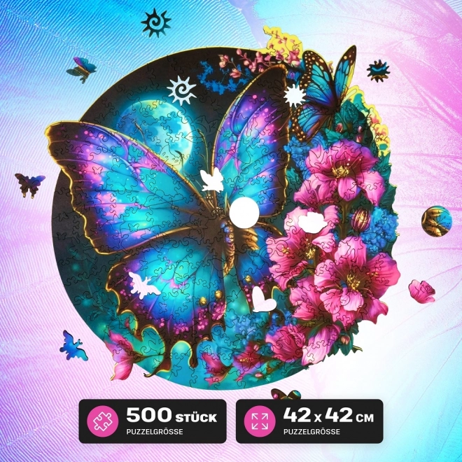 Avasta puslede võlu puidust liblikamotiiviga puslega – premium-klassi FSC®-sertifitseeritud puidust paksusega 5 mm, 500 ainulaadse tükiga, mis on laseriga täpselt väljalõigatud ja kaetud erksa UV-digitrükiga. Naudi tunde lõõgastust, arenda loogikat ja peenmotoorikat ning muuda valminud töö stiilseks seinakaunistuseks – pakendis on kõik vajalik.