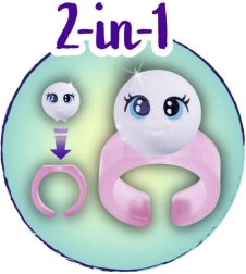 Komplektis on särav pärl, mille saab asetada kaasasolevasse sõrmusesse – nii saavad lapsed armsa mänguehte.