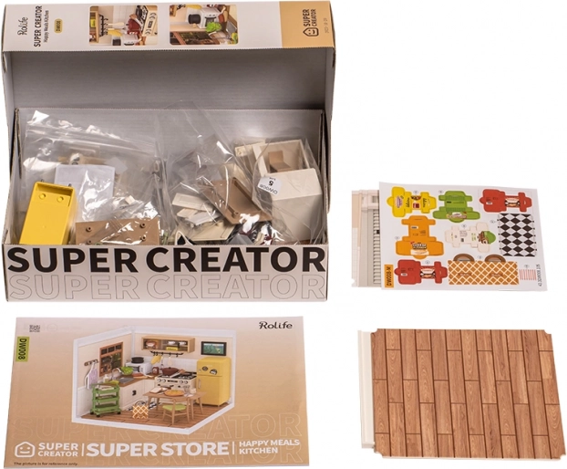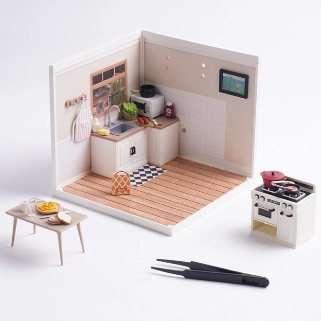 Avasta ROBOTIME detailsete miniatuuride maailm ja loo mõnus köögike mahetes toonides. Mudel sisaldab pliiti, kappe, söögimööblit ja pisitarvikuid, mis mõjuvad loomulikult ja autentselt. Tänu LED-valgustusele kerkib esile iga detail ning sinu looming kaunistab riiulit või töölauda.