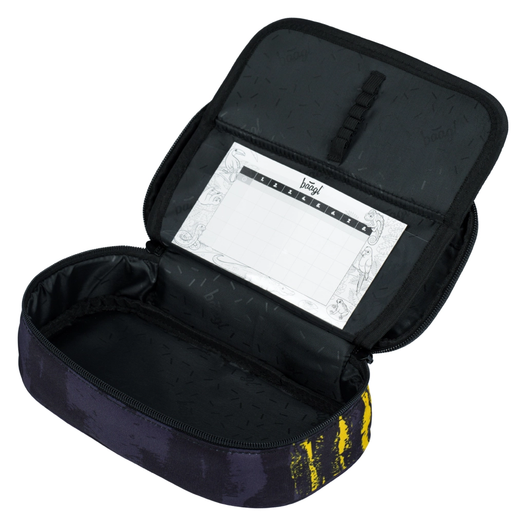 Volditav sisemine vaheklapp elastsete hoidikutega teeb pliiatsite ja pastakate korrastamise lihtsaks, samas kui sisemine lukuga tasku kaitseb pisitarbeid, nagu kustukumm, teritaja või USB-mälupulk. Olemas on ka tunniplaani tasku igapäevase planeerimise hõlbustamiseks.