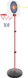 See 2‑ühes lastekomplekt pakub tunde rõõmu ja liikumist: harjutage nii korvile viskamist kui ka sihtimist vibuga. Kerge ja stabiilne konstruktsioon võimaldab lihtsat kaasaskandmist ja kiiret korvikõrguse seadistamist, nii et see “kasvab” koos lapsega. Suurepärane valik koju, aeda või lastetuppa.