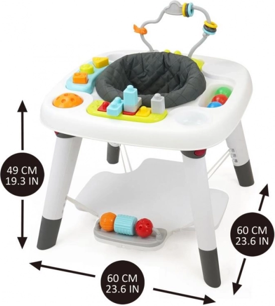 Interaktiivne laste mängulaud 3-ühes on enamat kui lihtsalt mänguasi. Esimeses etapis saab laps avastada ümbritsevat maailma mugavalt istmelt, kus mänguasjad on kergesti käeulatuses. Teine etapp toob lõbu kõndima õppimisel ja suhtlemisel interaktiivsete ning värviliste mänguasjadega laua ümber. Kolmas ja viimane etapp muudab laua funktsionaalseks mööbliesemeks, mida saab kasutada mängimiseks, söömiseks või muude loovate tegevuste jaoks.