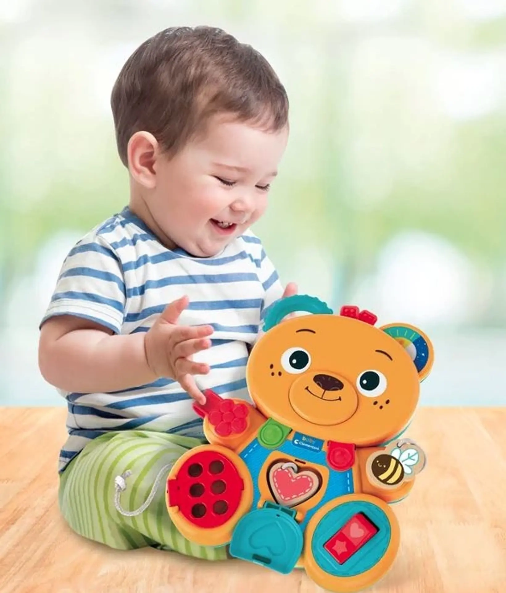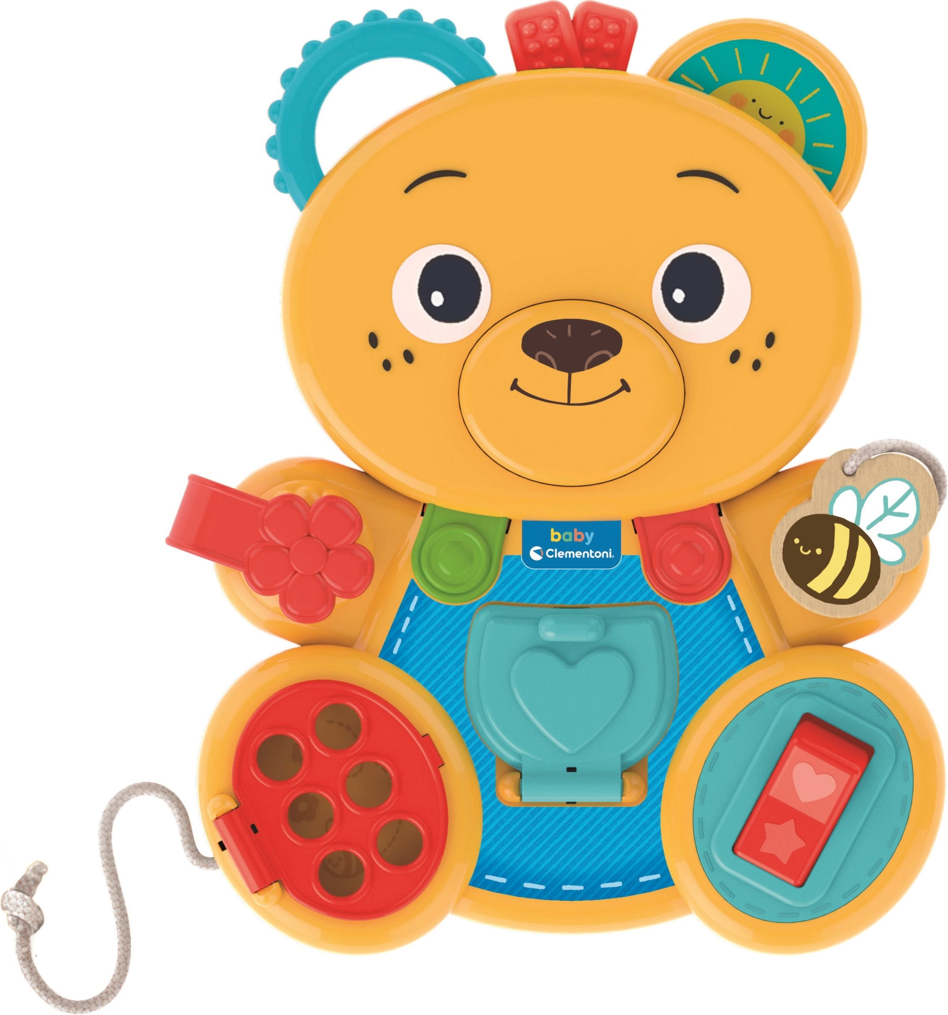 Lõbus ja värviline CLEMENTONI karu toetab alates 12. elukuust laste peenmotoorika, keskendumisvõime ja sensoorset tajumist. See on loodud vastavalt Montessori metoodikale ning pakub mitmeid tegevusi, nagu läbipõimitavad aasad nööriga, klõpsuga lüliti, sisestatava kujuga süda, avatavad uksed ja pööratav kõrv. See ühendab pehmeid ja jäikasid elemente, sh puidust detaile mitmekülgseks ja turvaliseks arenguks.