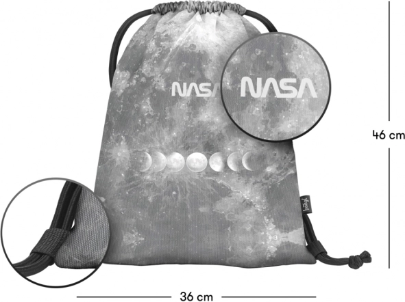 Vastupidav, pestav materjal NASA motiiviga. Tugevate nööridega kokkutõmbamine võimaldab mugavalt ka seljas kanda – ideaalne vaba aja tegevusteks.