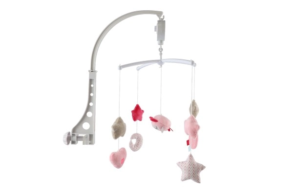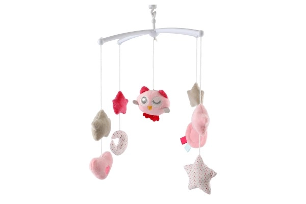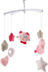 Roosa muusikaline voodikarussell öökulliga pakub beebile rahu ja turvatunnet. Pehmed rippuvad elemendid tähekeste, südamekeste ja kuu kujul õõtsuvad õrnalt, samal ajal kui mehaaniline vedruga mängukell esitab meeldivat meloodiat. Vaikne töö ja visuaalselt meeldivad pastelsed toonid loovad enne uinumist rahustava õhkkonna.