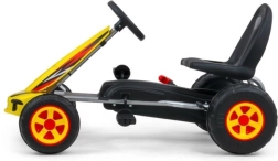 Tänu sõidule edasi ja tagasi pedaalidega, käsipidurile ja vahukummist ratastele värviliste velgedega on sõit sujuv ja mugav ka ebatasasel pinnal. Kaheastmeline istme kauguse reguleerimine roolist tagab õige asendi ja mugavuse eri kasvuga lastele.