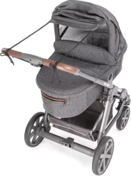 Kummiäär kapuutsi peale ja stopperitega nöörid võimaldavad varju hõlpsalt kinnitada enamikele kärudele ning kohandada vastavalt oludele.