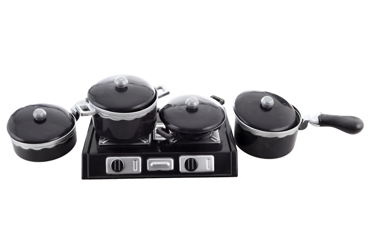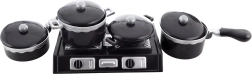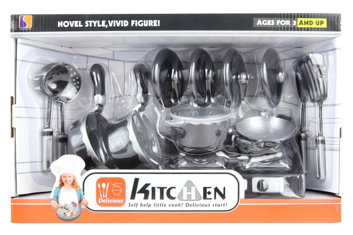 Sisaldab 3 potti, wok-panni, 4 kaant, pliiti ja lisatarvikuid realistseks kokkamismänguks.
