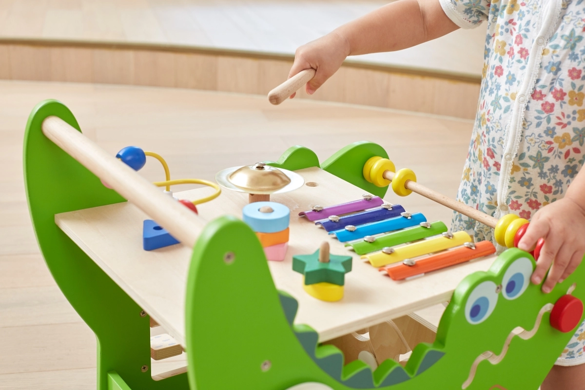 Ksülofon, loendaja, labürint, hammasrattad, kujude sorteerimiskast, motoorikasilmus ja teised elemendid hoiavad lapsed tegevuses ning arendavad oskusi mängleva kergusega.