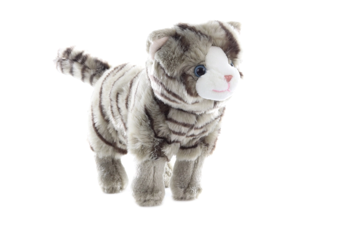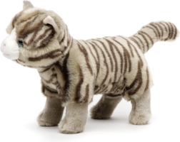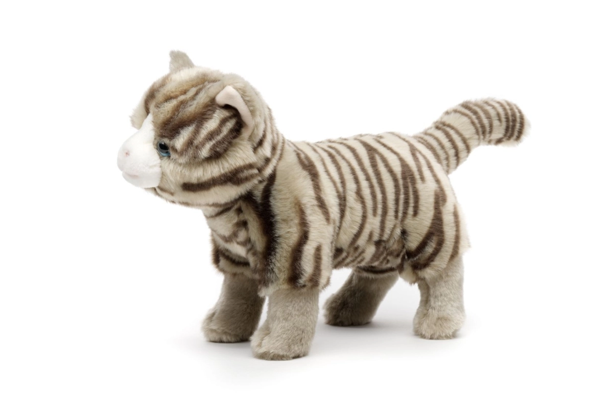 Pehme plüüs õrna triibustusega ja siniste silmadega mõjub usutavalt ja kutsub kallistama.