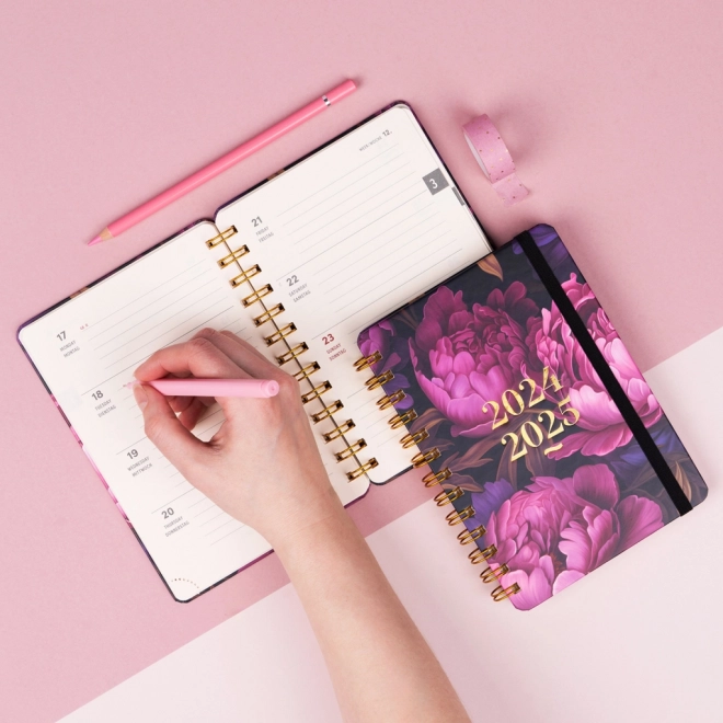 Elegantne ja funktsionaalne NOTIQUE Petito märkmik lillade õitega aitab hoida kõik kontrolli all kogu 18 kuu vältel. Kalendarium algab juulis 2024 ja lõpeb detsembris 2025, katta jõuab katkematult nii kooli- kui ka tööhooaja. Nädalapõhine joondatud paigutus koos märkmeruumiga annab selge ülevaate sinu ülesannetest, kohtumistest ja isiklikest plaanidest.