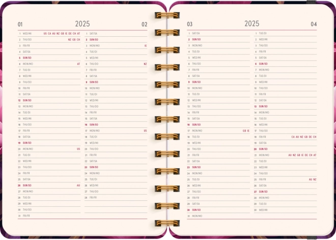 Tänu kompaktsel mõõdule 13 × 18 cm mahub märkmik kergesti käekotti või seljakotti, spiraalköide võimaldab mugavat täielikku avamist ja mõnusat kirjutamist. Ülevaated aastateks 2024 ja 2025 ning tähistatud pühad lihtsustavad orienteerumist ja planeerimist.