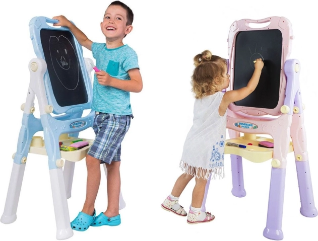 Laste kahepoolne magnet- ja kriiditahvel molbertil