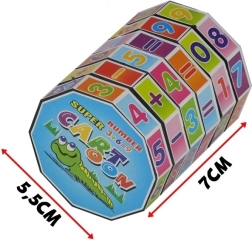 Värviline silindrikujuline mõistatus pöörlevate rõngastega aitab lastel mänguliselt omandada matemaatika põhialuseid. Tänu numbritele ja märkidele harjutavad lapsed liitmist, lahutamist, korrutamist ja jagamist igal ajal ja igal pool. Vastupidav teostus ohututest materjalidest vastab standardile EN 71, sobib alates 3. eluaastast ning kompaktsed mõõtmed 7 × 5,5 cm teevad sellest ideaalse reisikaaslase.