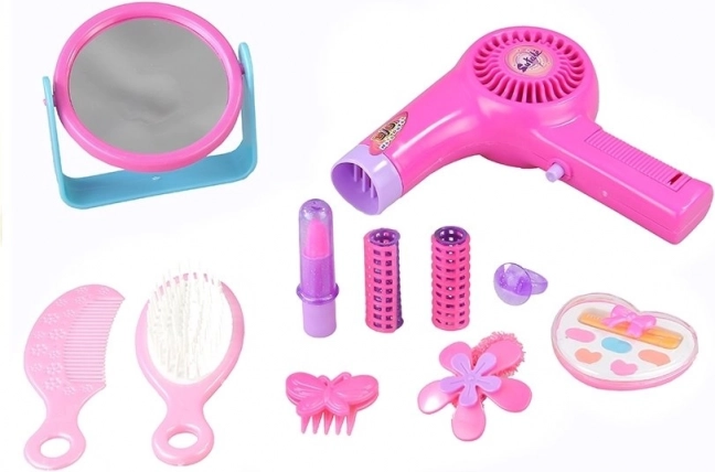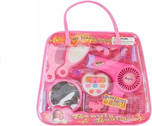 Armas kosmeetikakomplekt läbipaistvas käekotis rõõmustab kõiki väikeseid ilusalonge. Komplektis on töötav mänguföön patareidega, lauapeegel, hari ja kamm, juukselisad ning lauvärvipalett ja „huulepulk” turvaliseks ja loovaks mänguks. Kerge plastikust konstruktsioon ilma teravate servadeta, CE-sertifikaat ja lapse käele sobiv suurus tagavad turvalise ja kauakestva lõbu.