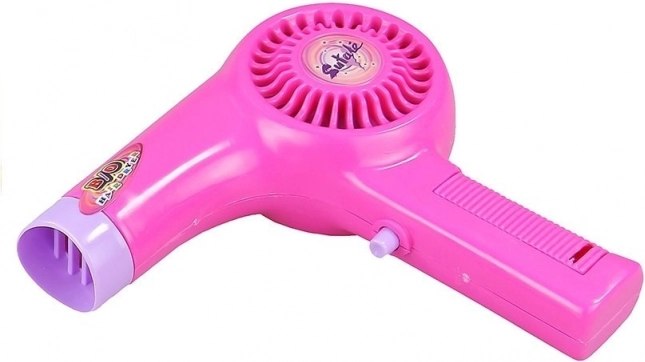 Föön, mida toidab 1× AA 1,5 V (ei kuulu komplekti), puhub õrna õhuvoo ja teeb realistset heli – ideaalne usutavaks juuksurisalongi mänguks.