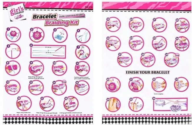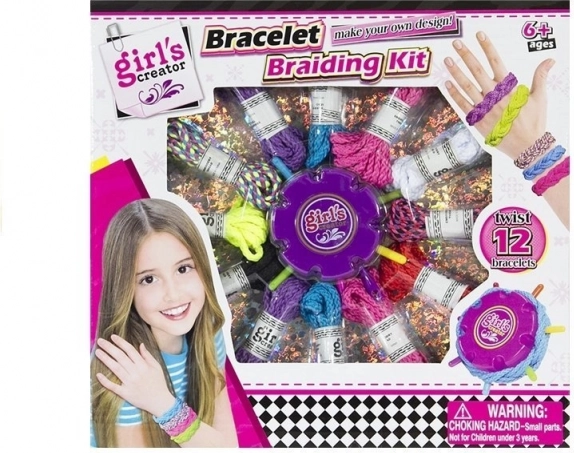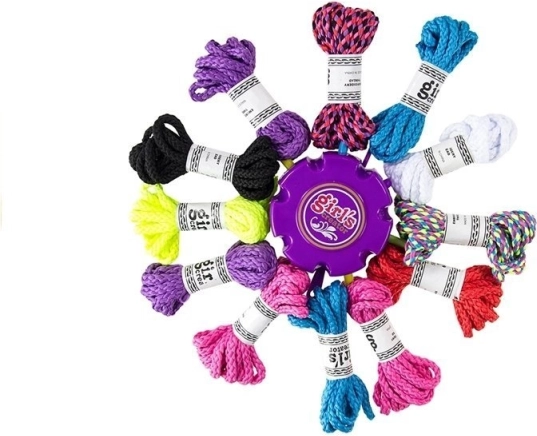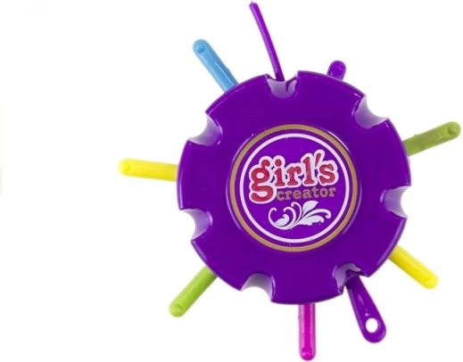 Komplekti kuulub ümmargune abivahend, mis muudab käevõrude punumise lihtsamaks ja aitab luua keerukamaid mustreid.