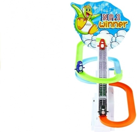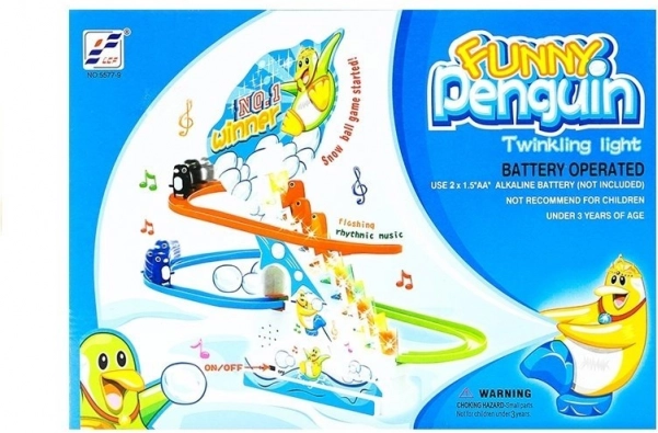 Pingviinid liuglevad mööda rada, samal ajal kõlab rõõmus meloodia, mis tagab väikestele tundide kaupa rõõmu ja meelelahutust.