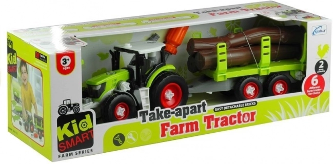 Lahtivõetav traktor haagisega aitab arendada laste motoorseid oskusi, loovust ja iseseisvust. Üksikosade kruvimine ja lahtivõtmine tugevdab loogilist mõtlemist ja enesekindlust. Valmistatud plastikust, mis tagab mänguasja pika kasutusea. Traktoril koos haagisega on pöörlevad parketirattad, mis tagavad realistliku sõidu.
