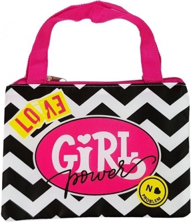 Väike kotike mustvalge siksakmustriga ja roosa kirjaga "Girl Power".