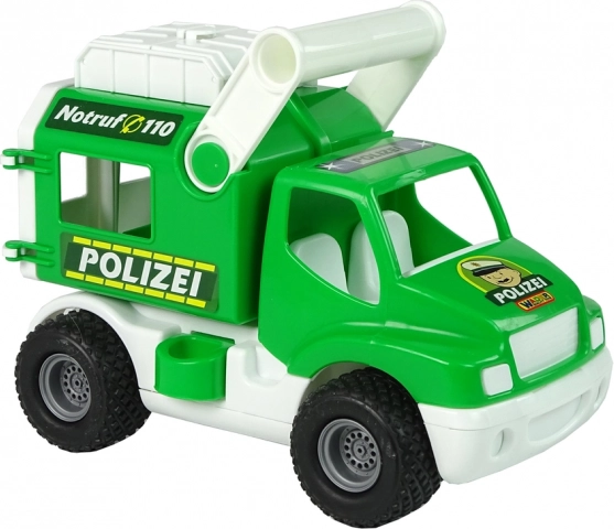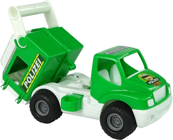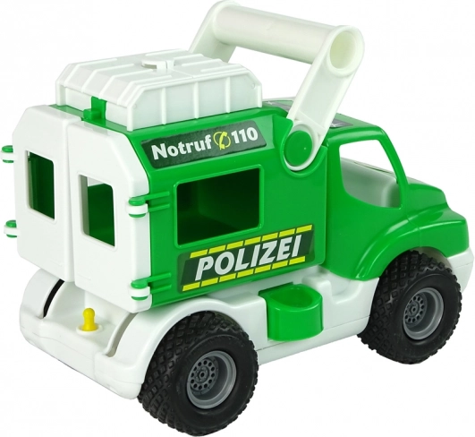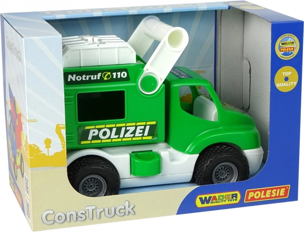 Roheline Polesie ConsTruck politseiauto on vastupidav mänguasi alates 1. eluaastast. Sellel on mustriga kummirehvid parema haarduvuse jaoks, avatavad tagauksed ja ülemine panipaik väikeste aarete ja figuuride peitmiseks. Külgne haagise lukustus ja kallutav kast tagavad pikaaegse lõbu ning toetavad peenmotoorika ja loogilise mõtlemise arengut. Valmistatud ohututest, sertifitseeritud materjalidest, CE-sertifikaadiga.