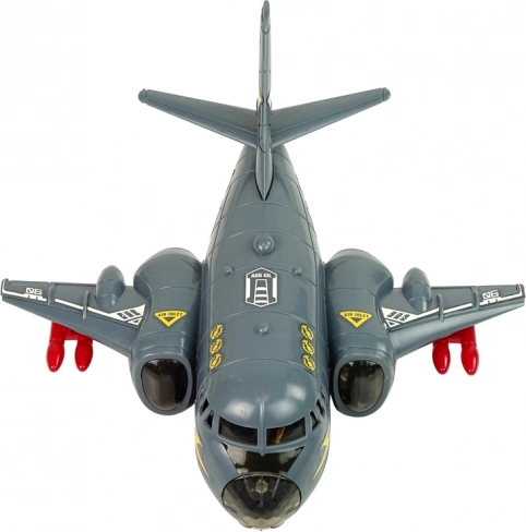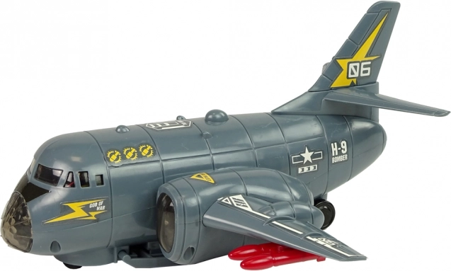 See interaktiivne pommitaja sobib suurepäraselt sõjaväe ja lennunduse fännidele. Hall disain koos punaste rakettidega annab autentse sõjalise välimuse. Mänguasi on valmistatud vastupidavast plastist ning sisaldab värvilisi dioode, mis süttivad kerel ja tiibadel, koos realistlike heliefektidega, nagu käivitamine ja tulistamine.