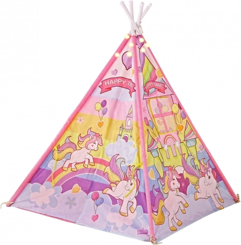 Telk on hõlpsasti kokkupandav ning pakub lastele ruumi mänguks või puhkuseks pärast pikka päeva. Katust kaunistavad lõbusad ükssarvikud ja värvilised lossid, mis toetavad laste fantaasiat.