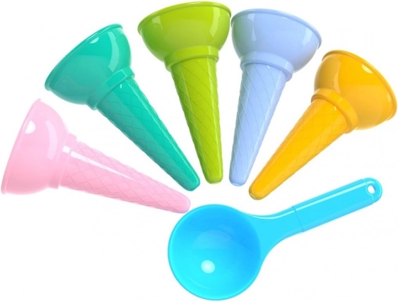 Muuda liiv väikeseks jäätisekohvikuks! See värviliste jäätisekoonuse-vormide komplekt koos kühvliga pakub tunde loovat mängurõõmu nii rannas kui liivakastis. Sisaldab 5 koonust + kühvlit, valmistatud vastupidavast, lõhnatust plastikust pastelsetes toonides. Sobib alates 1. eluaastast, vastab CE-sertifikaadile.