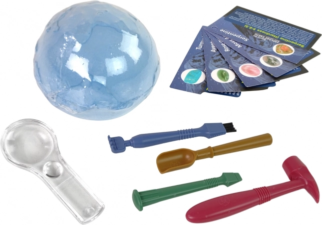 Avasta geoloogia ja arheoloogia maailma selle lõbusa lastekomplektiga. Komplekt võimaldab lastel kaevata “kipsmullast” päris mineraale turvaliste tööriistadega, vaadelda neid luubiga ning õppida nende nimesid tänu õppekaartidele. Arendab peenmotoorikat, kannatlikkust ja uudishimu – ideaalne kingitus väikestele avastajatele.