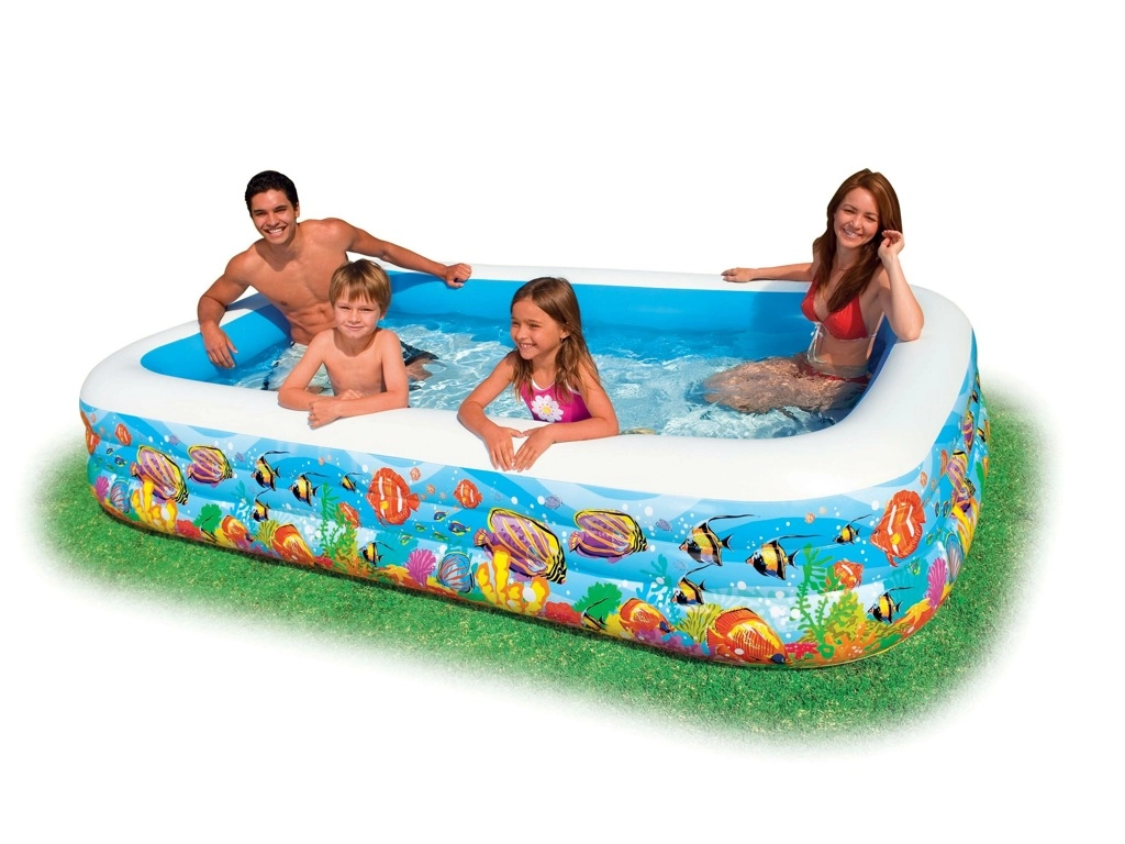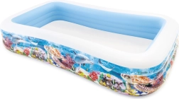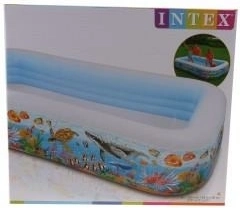 INTEX Tropical täispuhutav bassein meremaailma motiiviga muudab su aia värskendavaks oaasiks. Tänu suurtele mõõtudele 305 × 183 × 56 cm saavad selles mugavalt lustida nii lapsed alates 6. eluaastast kui ka täiskasvanud. Vastupidav vinüülmaterjal tagab pikaealisuse ja murevaba kasutuse.