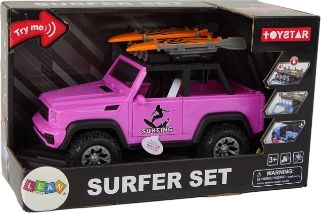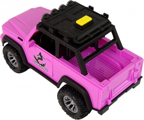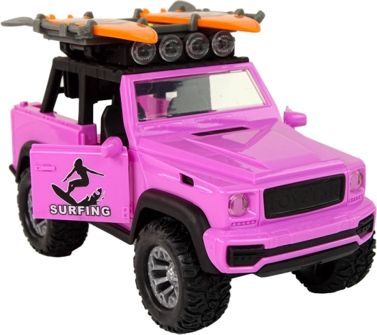 Naudi suvist meeleolu roosa off-road autoga surfiteemal. Realistlikud detailid, suured rattad ja hoorattavedu tagavad sujuva liikumise, samas kui tuled ja helid muudavad iga sõidu seikluseks. Katusel olevad surfilaud ja aerud ärgitavad fantaasiat ja kutsuvad looma rannalugusid.