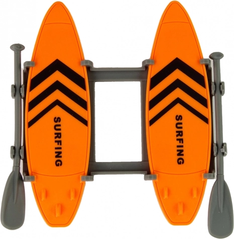Kaks surfilauda ja kaks aeru katusereelingul toetavad loomingulist mängu ja rannalugusid.