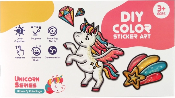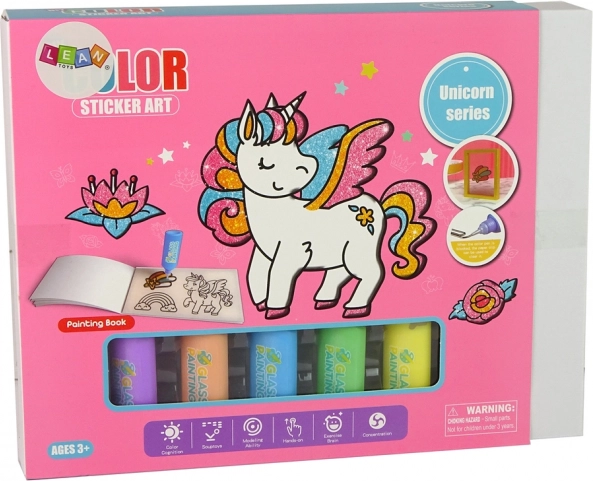 Komplektis on erinevad kleebised võluvate ükssarvikute, värvikirevate vikerkaarte ja sädelevate tähtedega. Teie laps naudib oma kujunduste maalimist. Kleebistel on vaid kontuur ja sisutäide sõltub iga lapse kujutlusvõimest. Komplektist leiate 8 sädelevat värvi, mis annavad kleebistele maagilise maa sära ja sätenduse.
