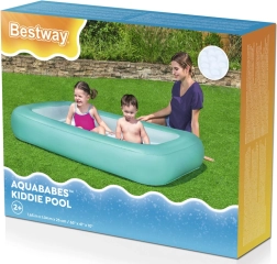 Täispuhutav bassein BESTWAY Aquababes on ideaalne valik esimesteks veemängudeks aias. Tänu pehmele, õhuga polsterdatud põhjale on laste jaoks istumine ja roomamine mugav ja turvaline, samal ajal kui lai ümbritsev rõngas hoiab kuju ja pakub stabiilsust.
