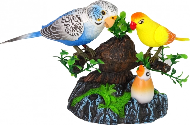 Interaktiivne mänguasi laulvate ja liikuvate papagoidega toob laste tuppa looduse võlu. Kaks värvilist papagoid oksal liiguvad ja teevad hääli, samal ajal kui väike tibupoeg särab värvilise valgusega. Piisab, kui vajutada mustale nupule, ja lõbu algab. Vastupidav plastkorpus, kompaktsed mõõtmed ja toide 3× AA patareiga teevad sellest mänguasjast suurepärase kaaslase nii kodus kui ka reisidel.